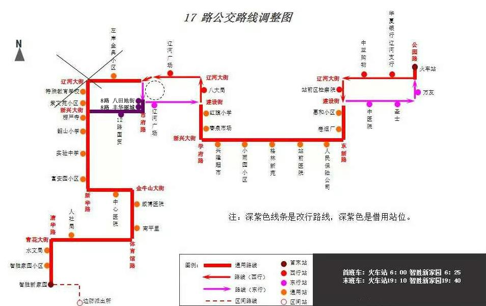 經(jīng)與公共事業(yè)局道路維修部門溝通得知,新華路沿線新興大街至遼河大街路段封閉施工,根據(jù)公共事業(yè)局施工部門所提供的封閉施工路段,現(xiàn)對公交17路部分路段進(jìn)行調(diào)整。具體安排如下: